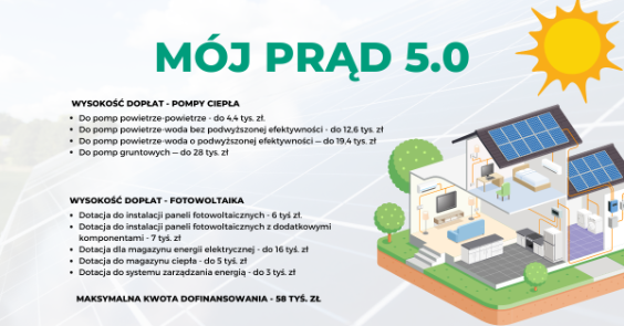 W programie „Mój prąd 5.0” zakres dofinansowania zostanie rozszerzony o pompy ciepła oraz kolektory słoneczne służące podgrzaniu wody użytkowej. Zmiana to wiąże się bezpośrednio ze zwiększeniem poziomu maksymalnego dofinansowania. Jak podało ministerstwo w 2023 roku maksymalna kwota dofinansowania ma wynieść 58 tysięcy złotych.